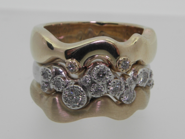 Kelta- ja valkokultaa timanteilla.